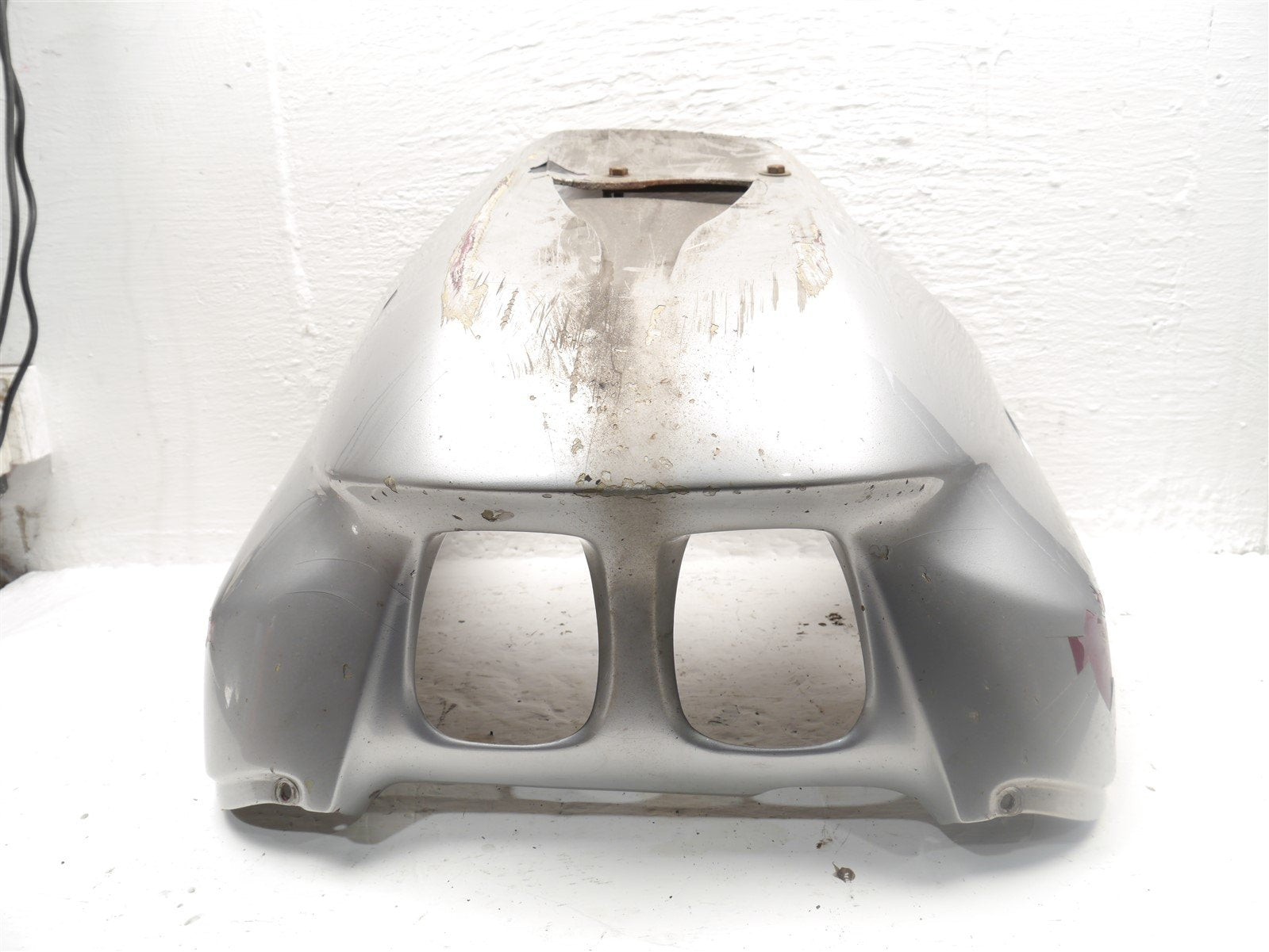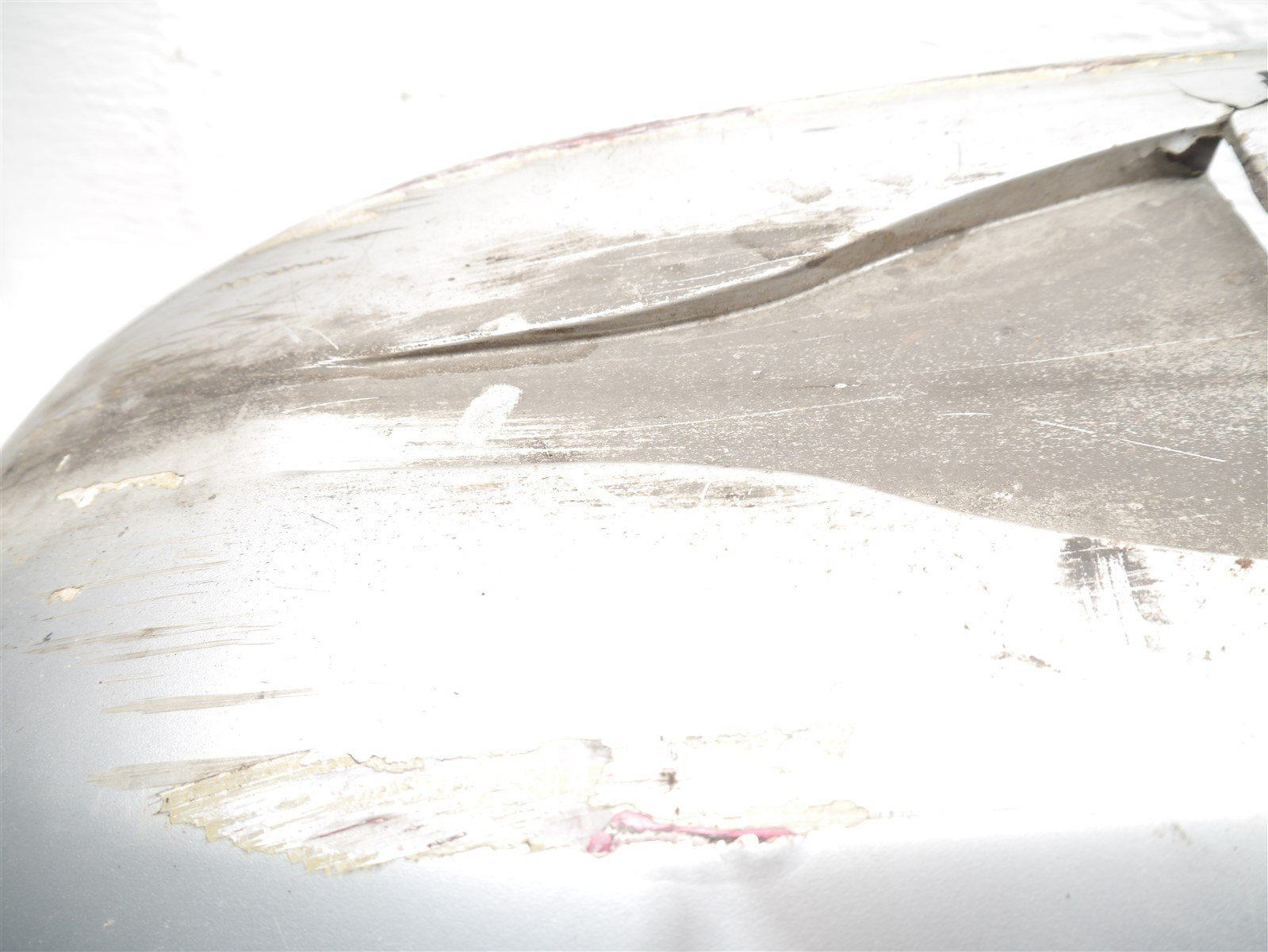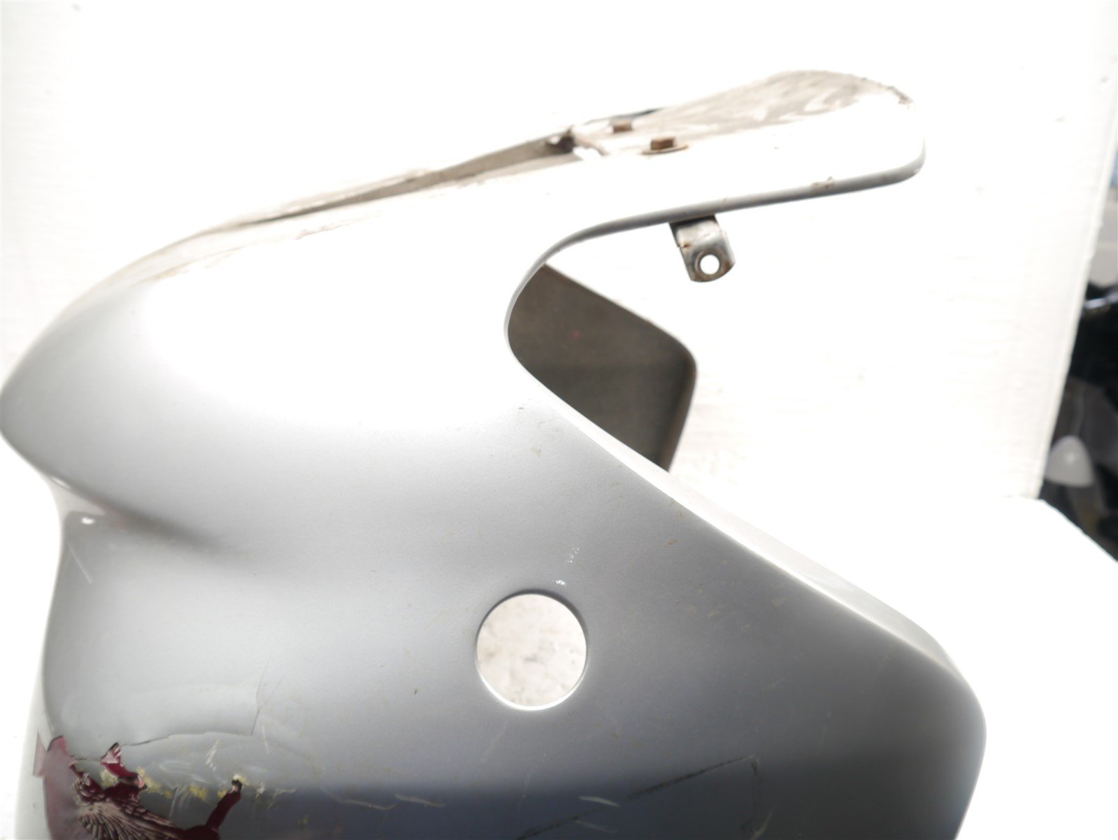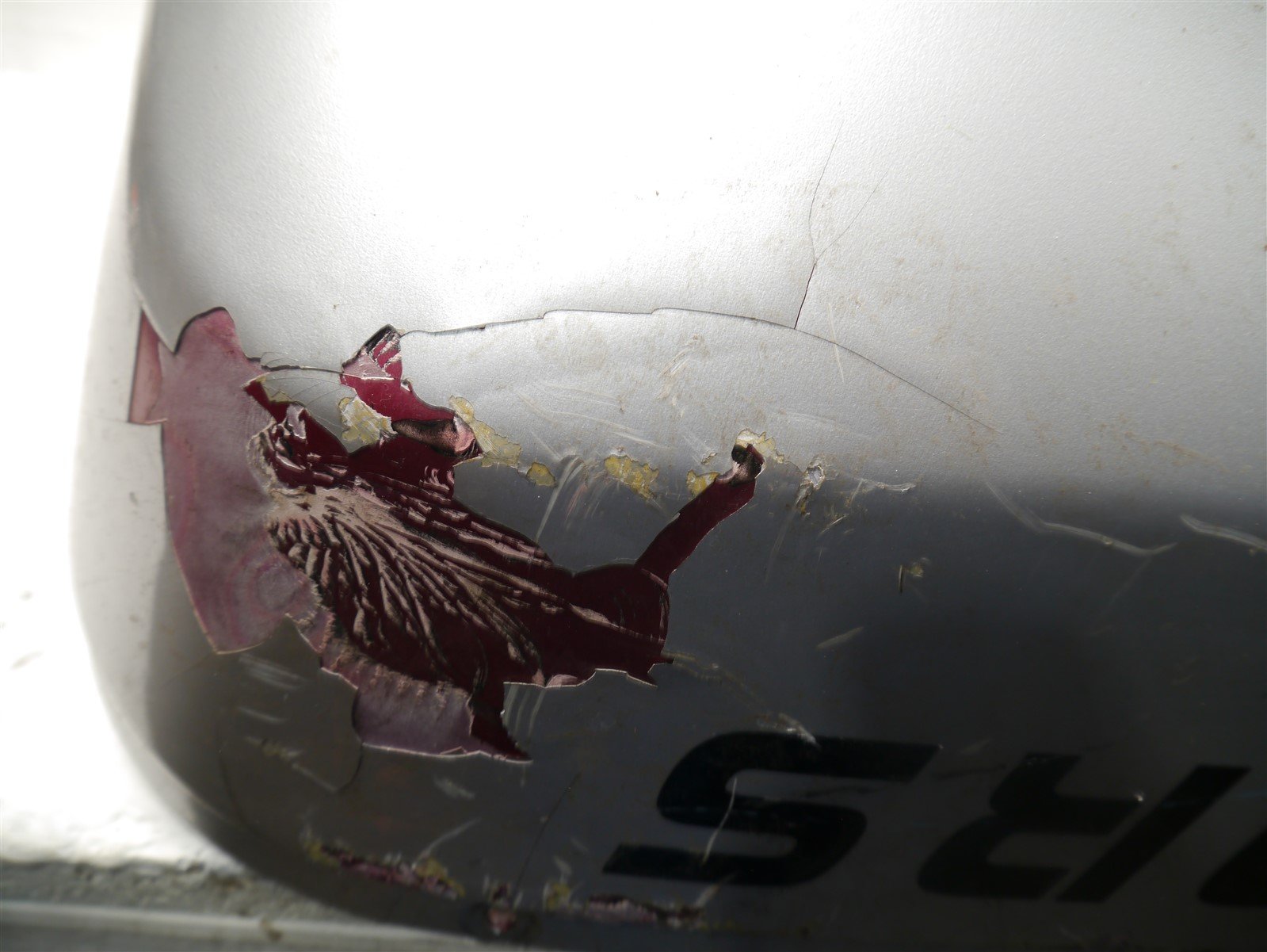 The fairing has been badly painted and the paint is coming off of it in large chunks