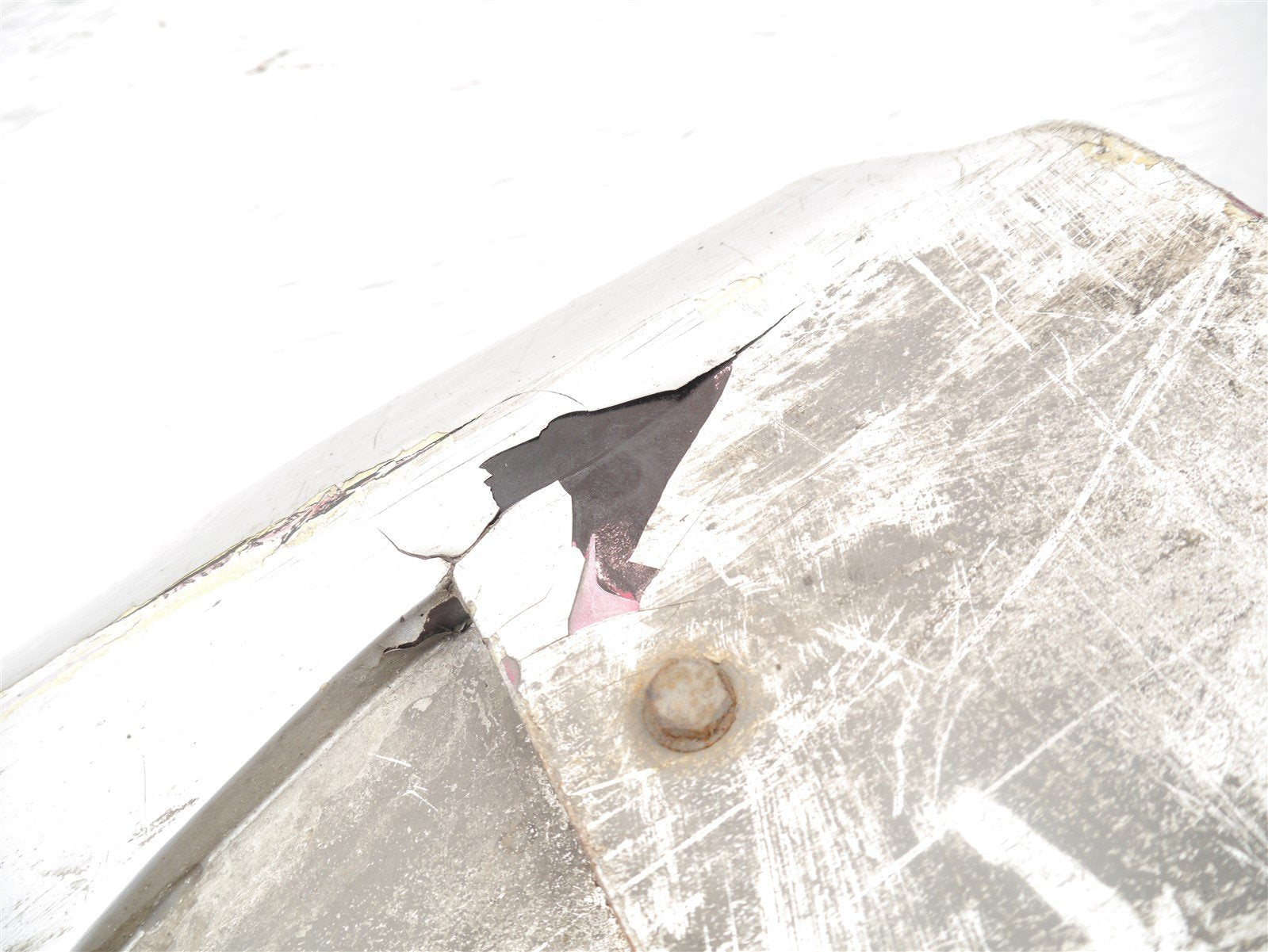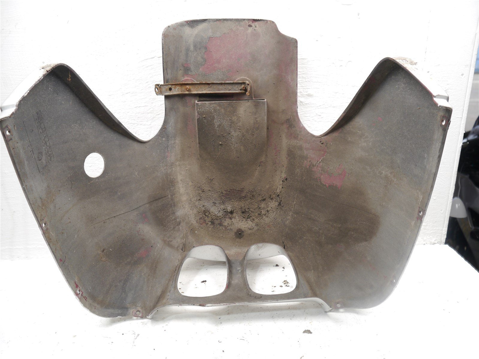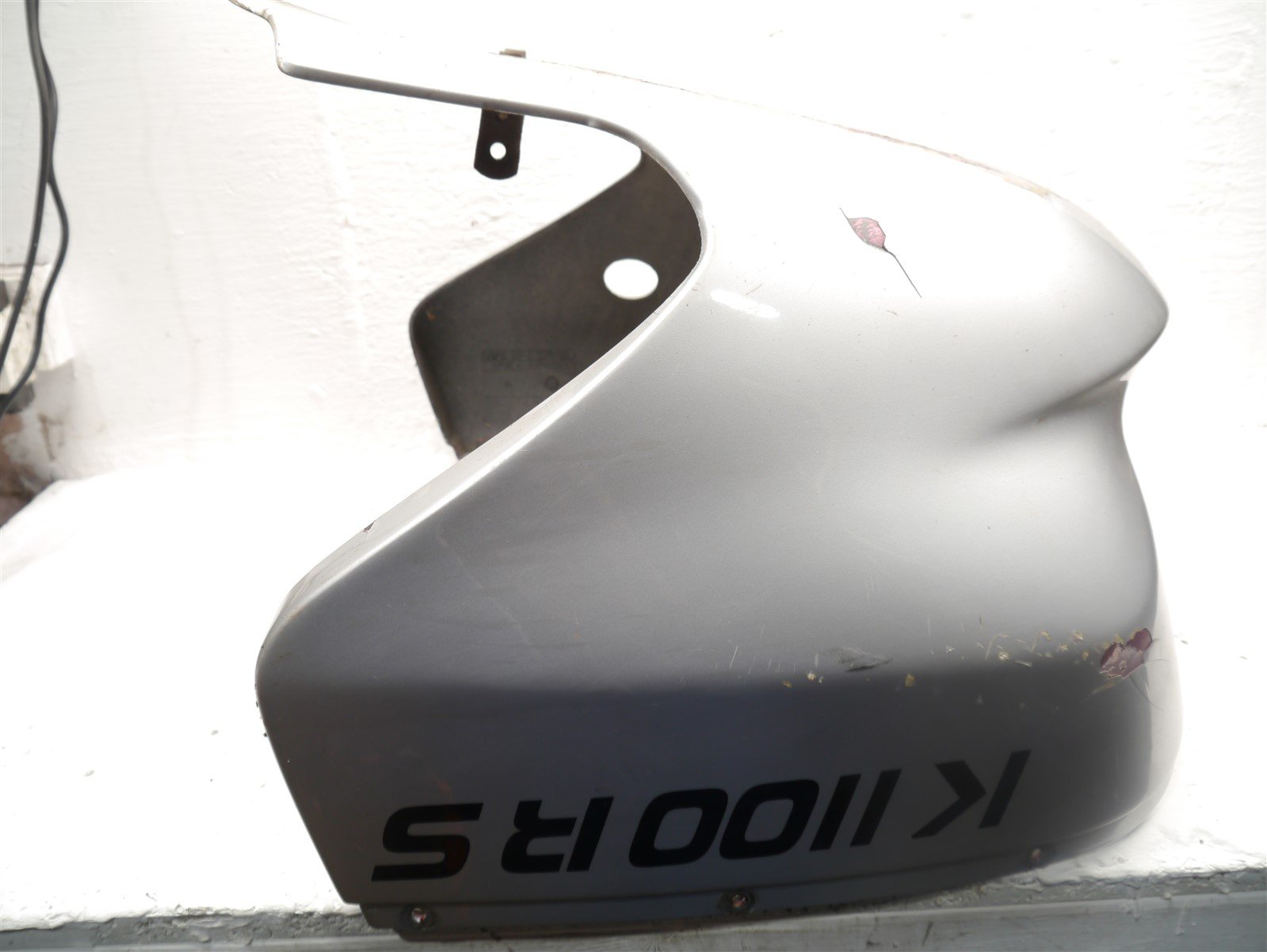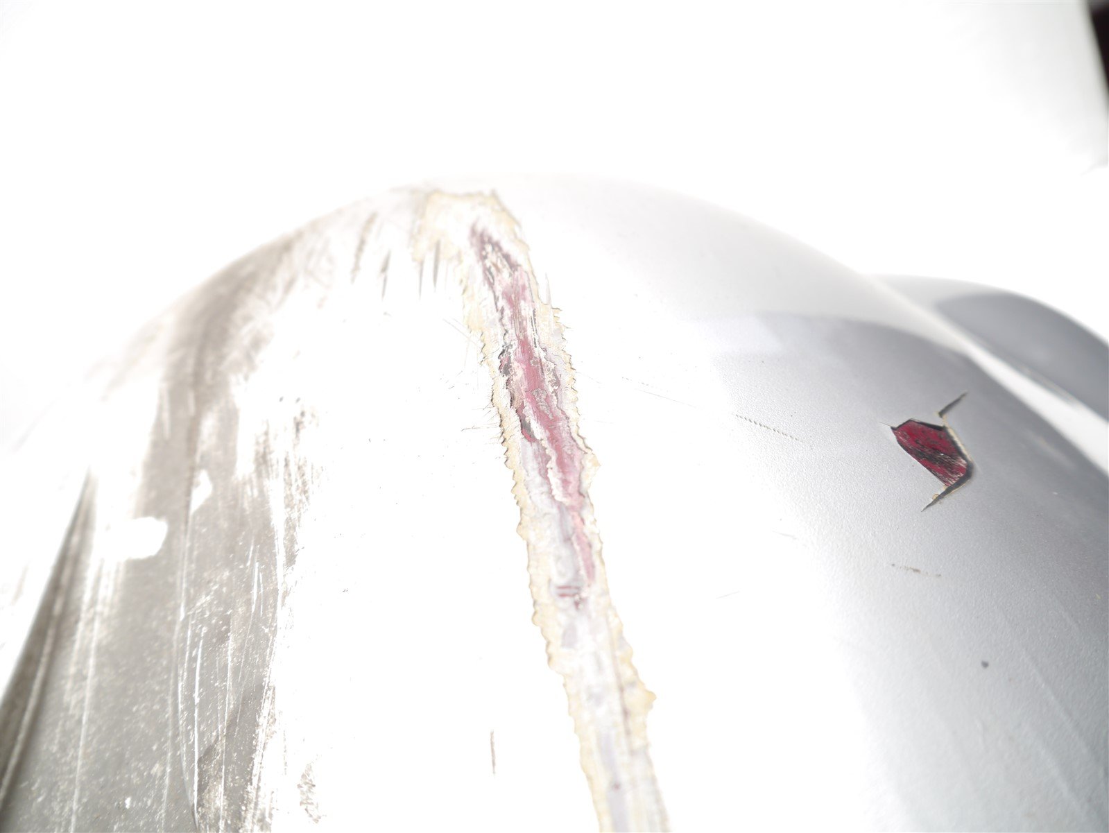 The fairing has been badly painted and the paint is coming off of it in large chunks