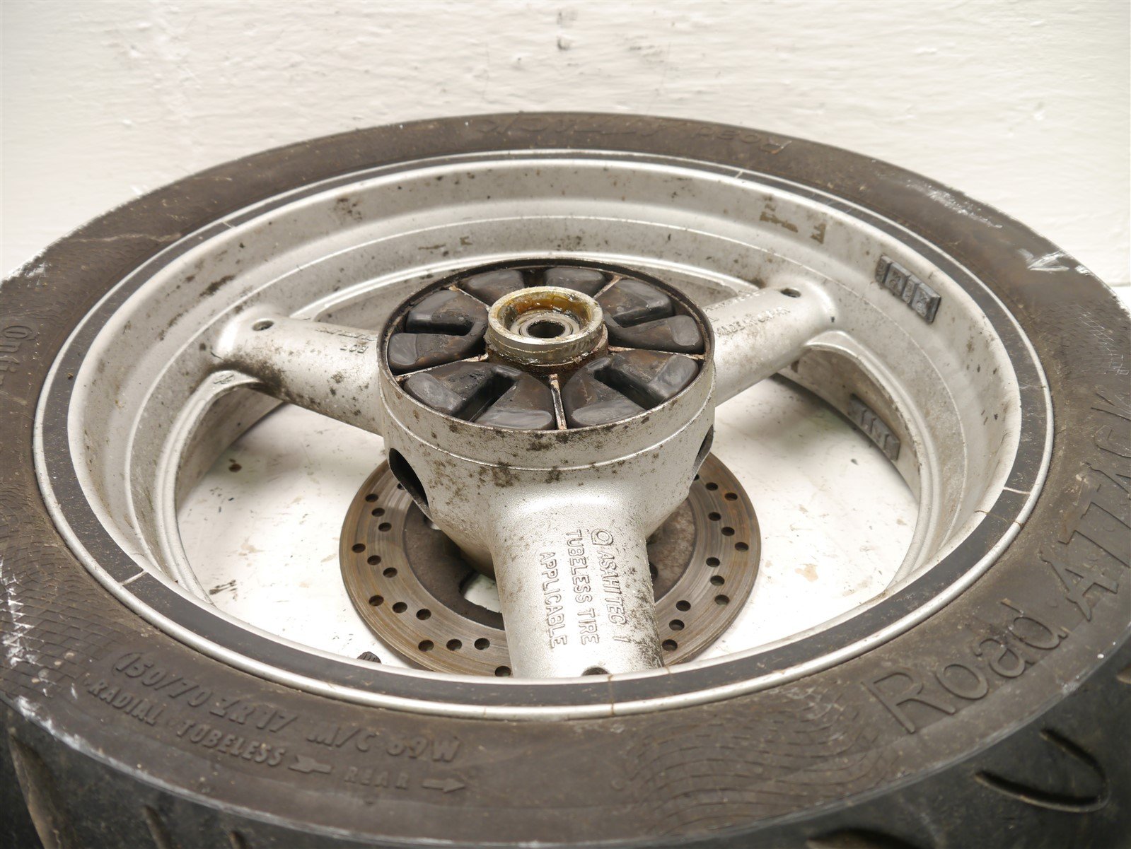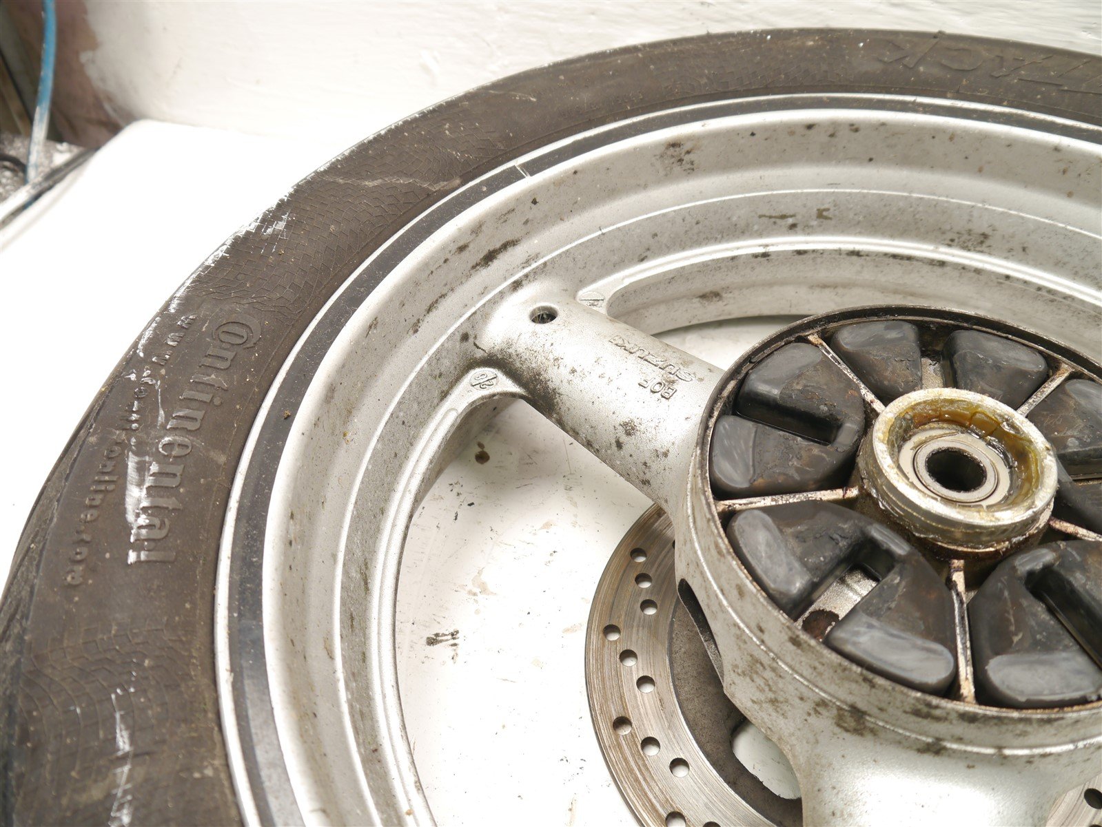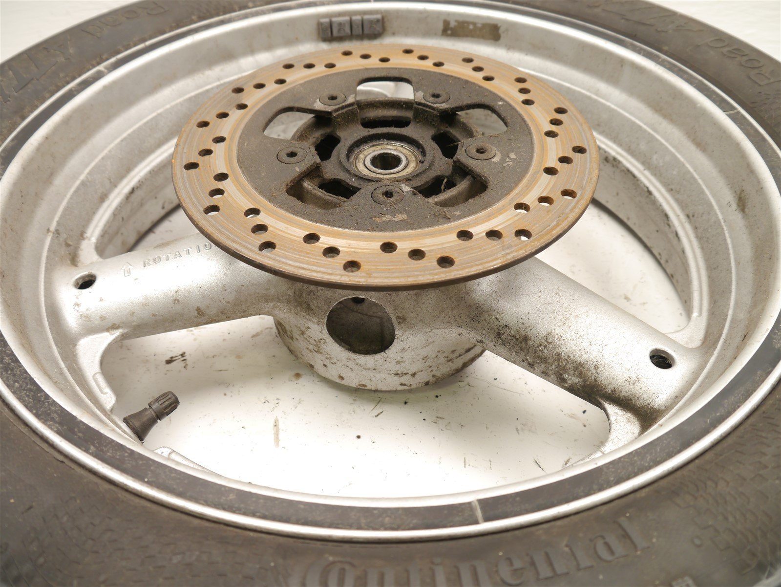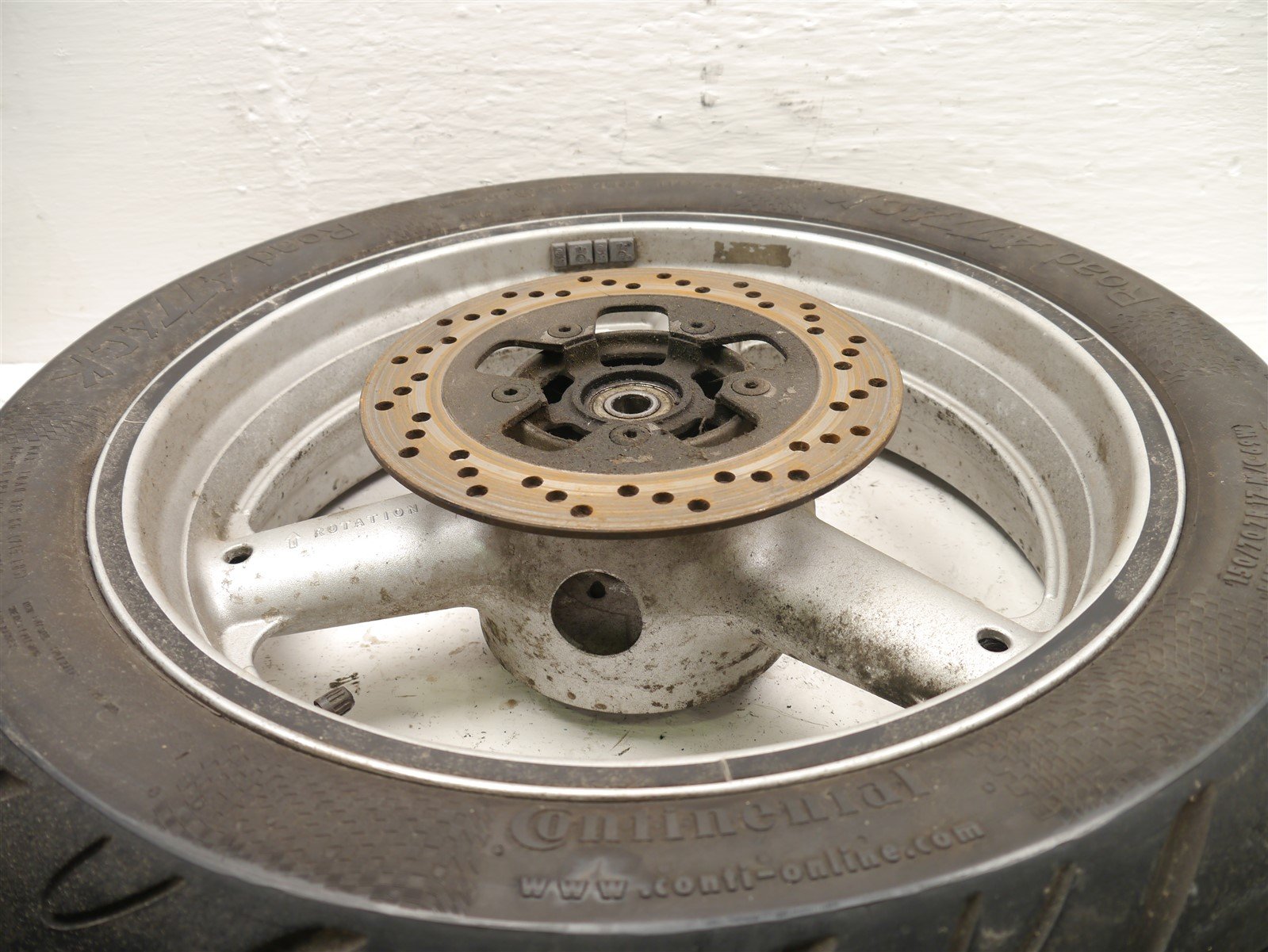 The tire and brake disc are worn out and need replacement