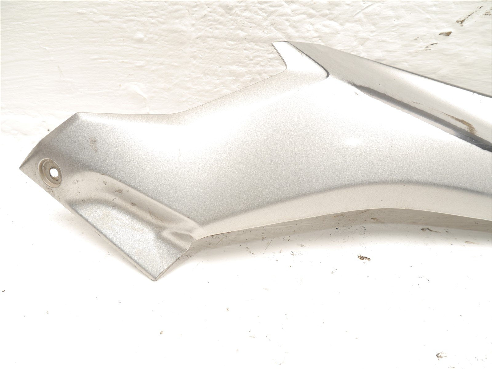 The fairing has wear to the paint but is intact