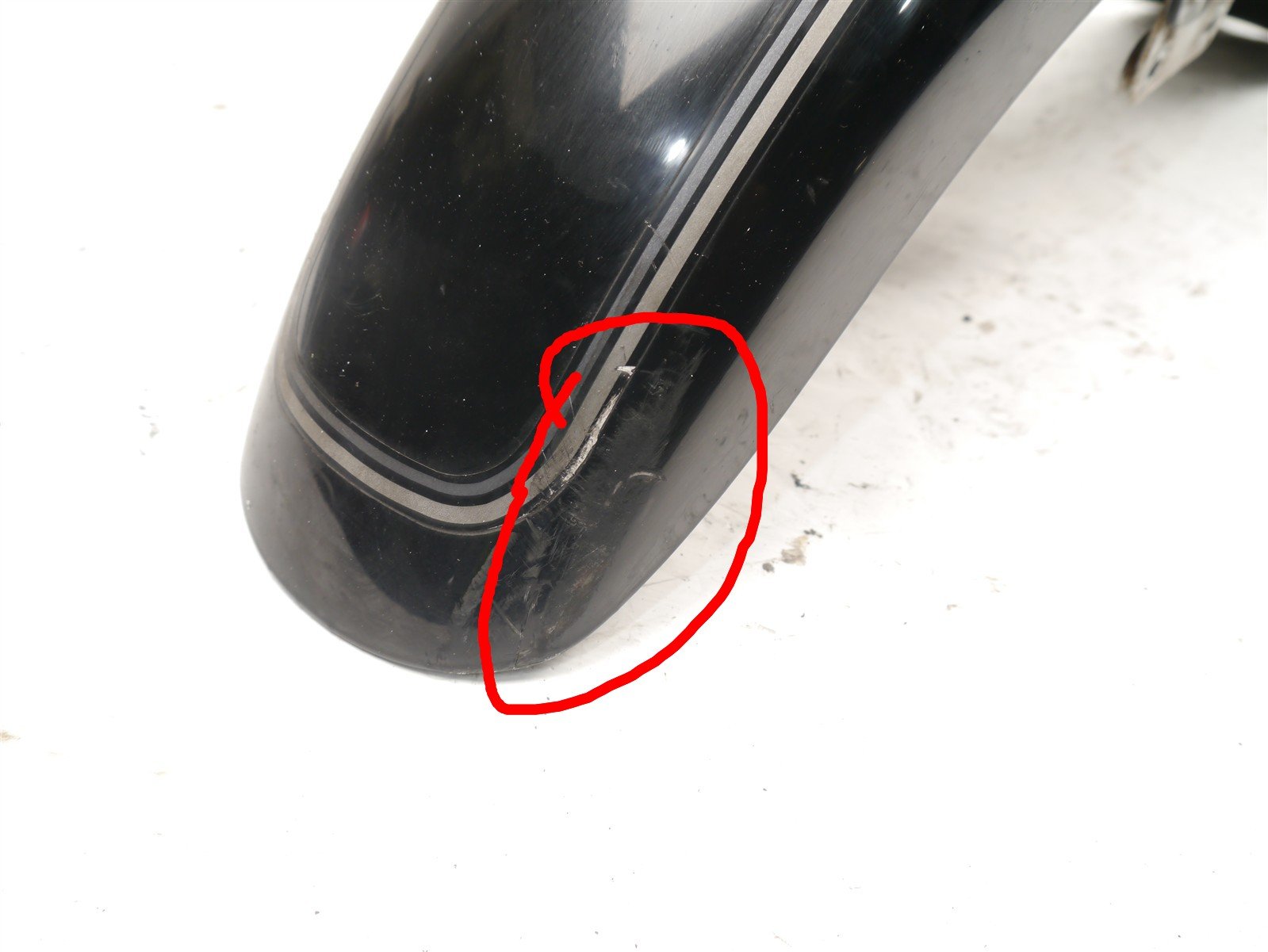 The mudguard has a scuff and crack at the front but is still usable